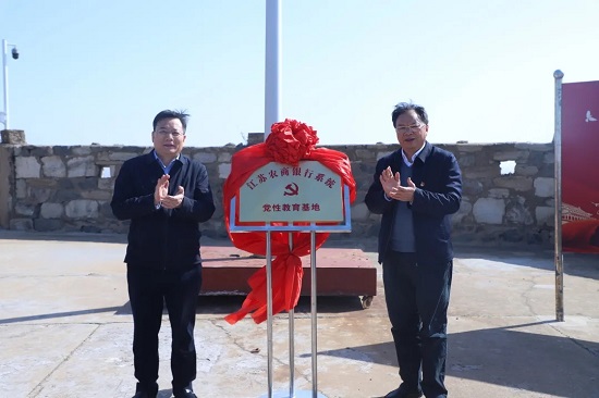 专题学习中,“江苏农商银行系统党性教育基地”揭牌仪式在开山岛举行。省联社党委副书记景伯秋,灌云县委常委、组织部部长、统战部部长何峥嵘共同为全省农商银行系统首座党性教育基地揭牌并致辞。
