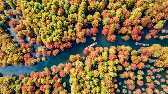 《秋染红杉林》
